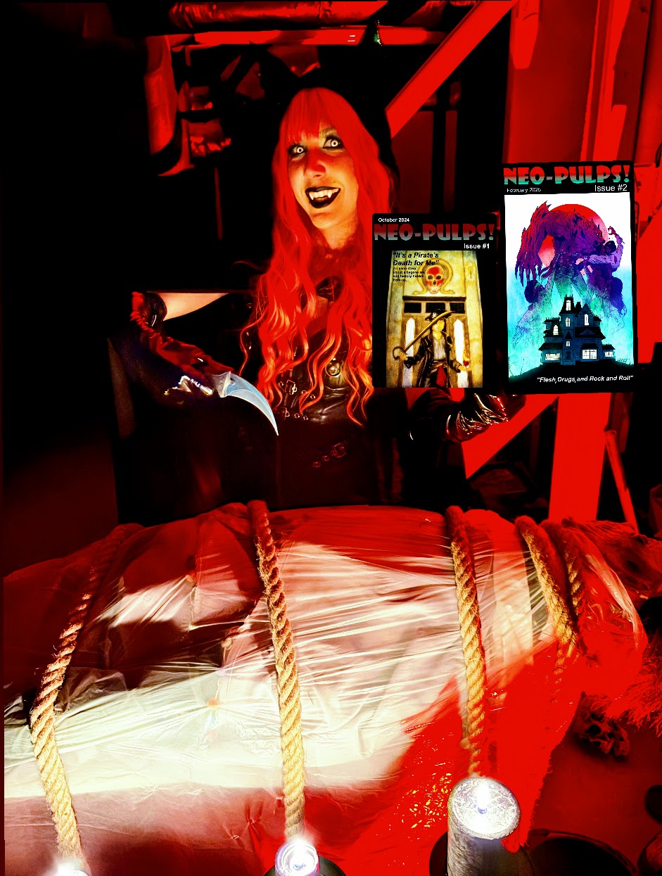 Neo-Pulps! is not only publishing bestselling books in magazine format it’s also releasing web shows, music videos, and producing independent films ( like the vampire comedy “Onlyfangs” (2025), the slasher parody “Blue Murder” (2025) the mumblecore parody “Vick & Tarstar’s Scarecrow Factory” (2025), the zombie biker film “The Evil %1” (2025), the splatter movie “Hellmare” (2026), and a classic ghost homage film “The Old House” (2026)), while also creating their own microbudget film: Melevill’s Tales From Hades.