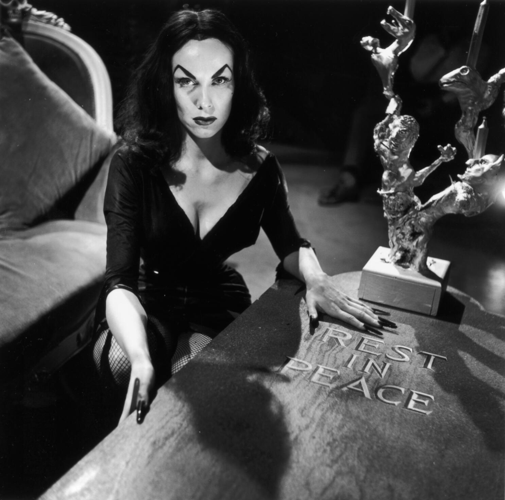 Vampira was not just sexy, she was a symbol of rebellion. She was always in control, portraying what a strong, sensual woman could be like. Her material didn’t rely on “boob” jokes every 3 seconds, or make her look like she was a disposable sex doll. On the contrary, Vampira, the character, was like a dominatrix, defying all authority while being creepy and spooky at the same time.